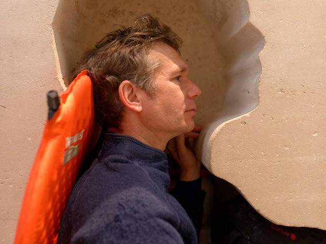 法國極端藝術家普安什瓦爾(Abraham Poincheval)近日在巴黎東京宮美術館(Palais de Tokyo)展出一塊內有「人形」空間的12噸巨石,且他本人會在裡面待滿一周。他說「自己這樣真是瘋狂又愚蠢」,不過他卻在2014年也曾把自己塞進一隻黑熊的肚子裡,似乎偏好這種狹小的密閉空間。