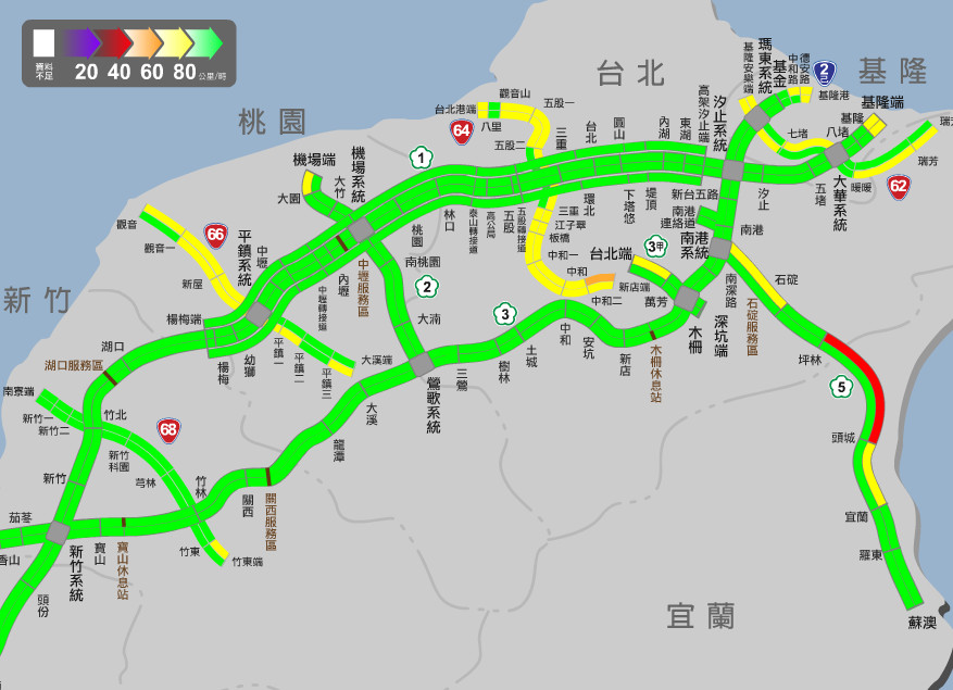 另外,高公局於11時10分啟動國5北上宜蘭至頭城路段大客車通行路肩措施,並啟動國5北上主線儀控及頭城、宜蘭、羅東、蘇澳入口匝道儀控管制,請民眾注意號誌指示行止,並留意主線資訊可變標誌內容及路側標誌之標示行駛。