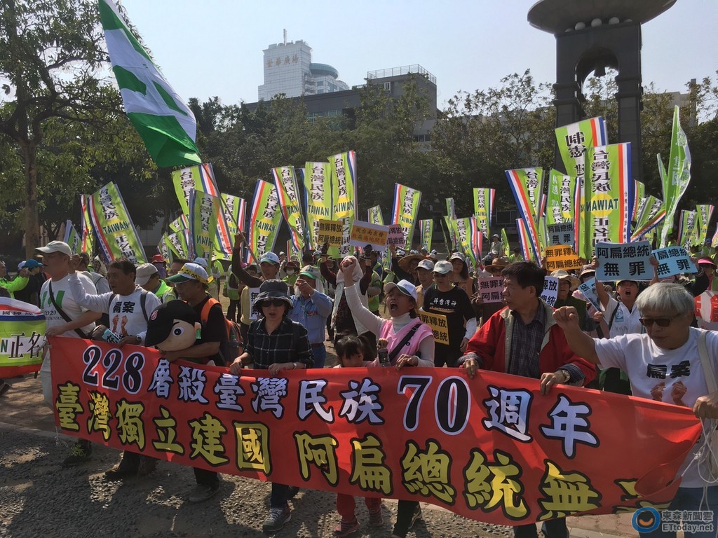 「阿扁聯誼會」28日下午2時28分,舉辦「哀悼228大屠殺70週年台灣建國阿扁無罪台南市大遊行」,約數百民眾參與此一遊行活動,台南市議員蔡旺詮、民進黨南區台南市議員參選人林志文,環保聯盟黃安調理事長等人都到場,追思228受難者及在高喊「台灣獨立建國、阿扁總統無罪」等口號後展開遊行活動。