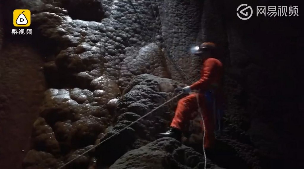 ▼天坑地勢險峻,救難員得靠繩索才能找人。(圖/翻攝梨視頻,下同。)