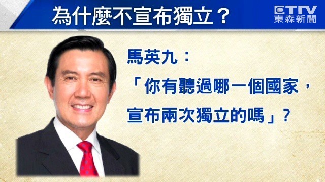 馬英九日前出席「亞洲協會」(Asia Society)及「外交關係協會」(CFR)合辦的座談會,與昔日哈佛大學恩師孔傑榮(Jerome Cohen )教授對談時談到,他相信沒有必要宣布台灣獨立,「這不會成功」,因為台灣已經是主權獨立國家,怎麼能再次宣布獨立?