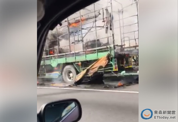 新北市一名劉姓駕駛和妻子4日上午開著大貨車,載送轎班的物品南下,不料行經國道中山高南下199公里彰化路段時突然起火燃燒,嚇得2人立刻跳車逃生,雖然火勢在1小時內獲得控制,但車上的神轎、大鼓和20多尊神像都付之一炬,貨車也全毀。