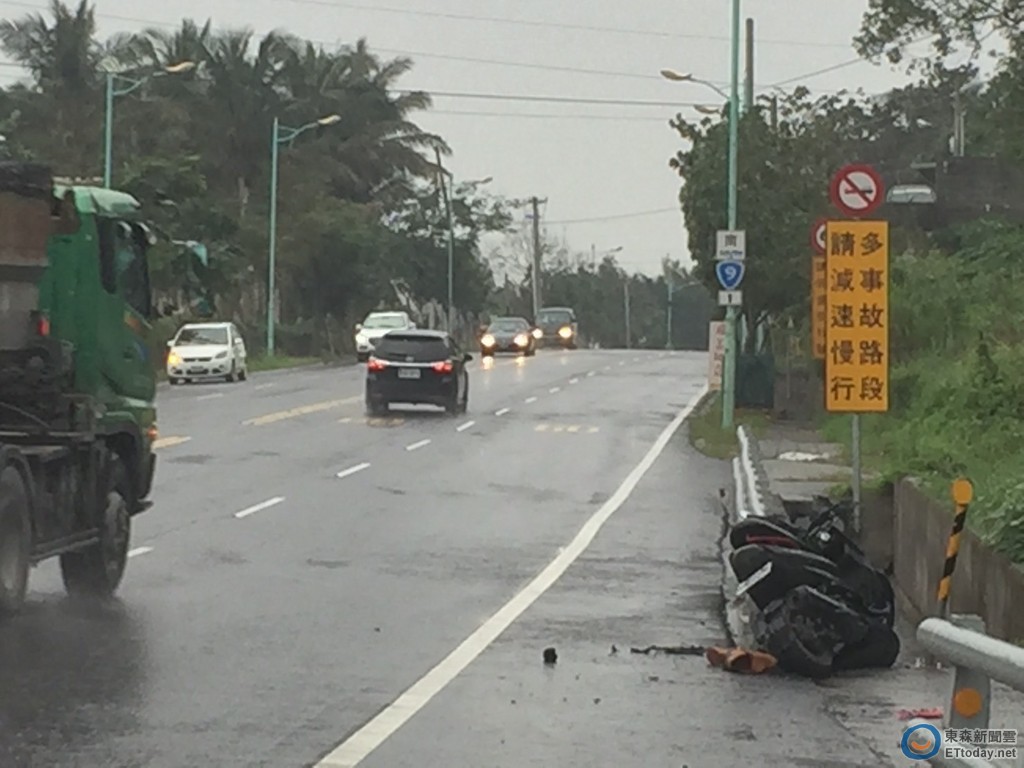 當地道路筆直、車行快速,李女警訊時仍顫抖不已,她表示,男友機車腳踏墊上拖鞋掉落,回頭看拖鞋卻沒有煞車,沒想到就撞上護欄。詳細事故發生原因,警方針對駕駛抽血驗酒測值釐清。