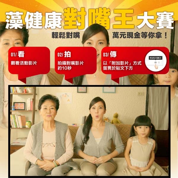 廠商表示,拍攝這支廣告的目的就是不想再走傳統守舊路線,保健食品也可以玩得很有趣。而趁勢推出的「藻健康對嘴大賽」,也希望讓產品跳脫以往冷冰冰的形象,以有趣的互動方式更貼近消費者。