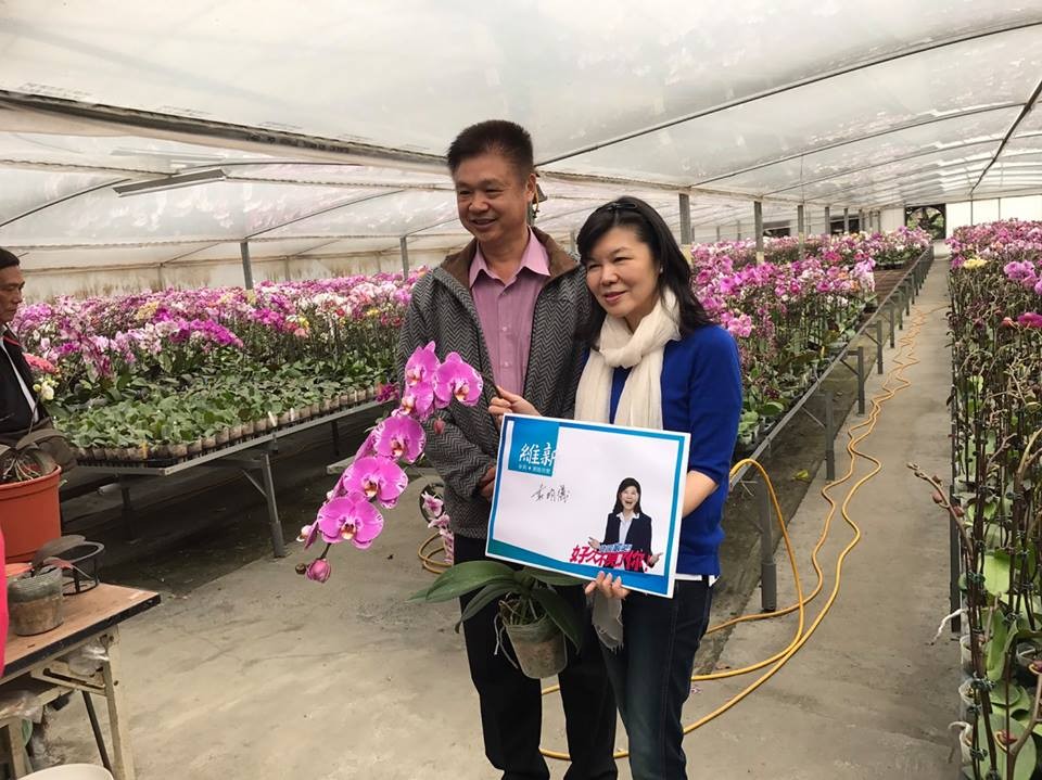 潘維剛自宣布參選後,同樣勤跑基層傾聽各界聲音,並尋求支持。她今天下午前往台拿學甲參訪剛以新品種「富樂之星」蝴蝶蘭,奪下台灣國際蘭展大獎花全場總冠軍的學甲富樂蘭園園主莊明儀。
