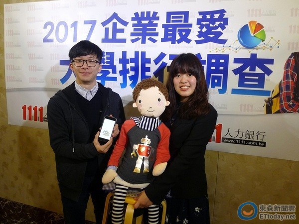 ▲中原大學企管系與商設系師生跨域合作,以討喜的包裝設計與網路行銷協助苗栗偏鄉銷售當地農產梨子。▼中原商設系校友吳俊慶(左)任職趨勢科技擔任介面視覺設計師,中原電子系王有慈(右)研發豆豆機器人陪伴特教生。(圖/中原大學提供)