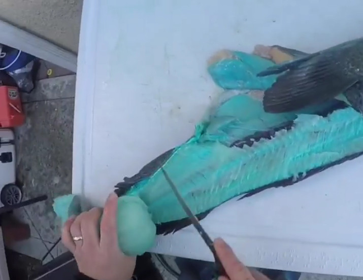 ▲漁民切開捕獲的魚,魚肉竟是藍色的。(圖/翻攝自bigjimspearo Instagram)