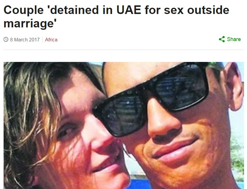 阿拉伯聯合大公國警方日前逮捕了一對外籍情侶,原因竟然是指控對方婚前「非法受精」,儘管這對情侶其實已經訂婚,只是在婚前意外發現懷孕就構成違法,於1月29日在阿布達比被逮捕。
