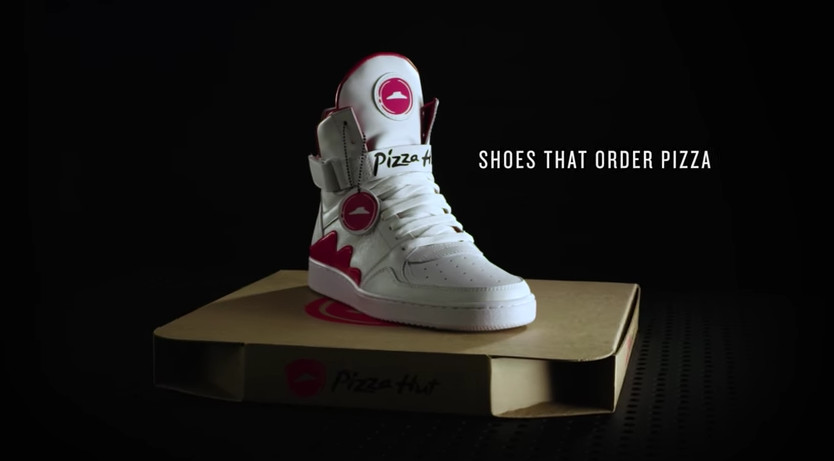 ▲必勝客的披薩智慧球鞋,全球限量64雙。(圖/取自Youtube Pizza Hut)