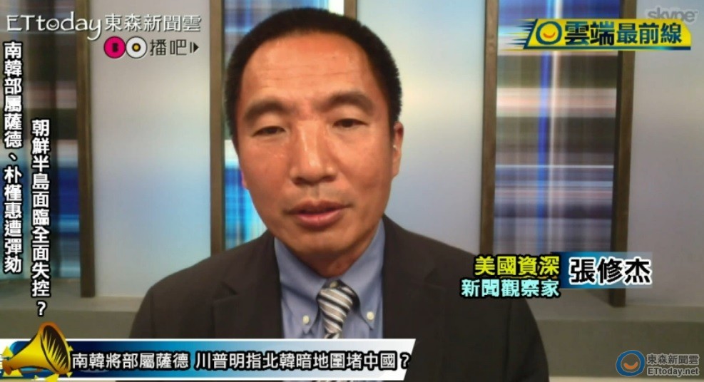 張修杰10日在《雲端最前線》節目中表示,美國部署薩德是一個國際的博弈,也帶來變數。首先,北韓跟中國之間來往的關係非常特殊,雙方並不是盟國,更多是互相牽制。
