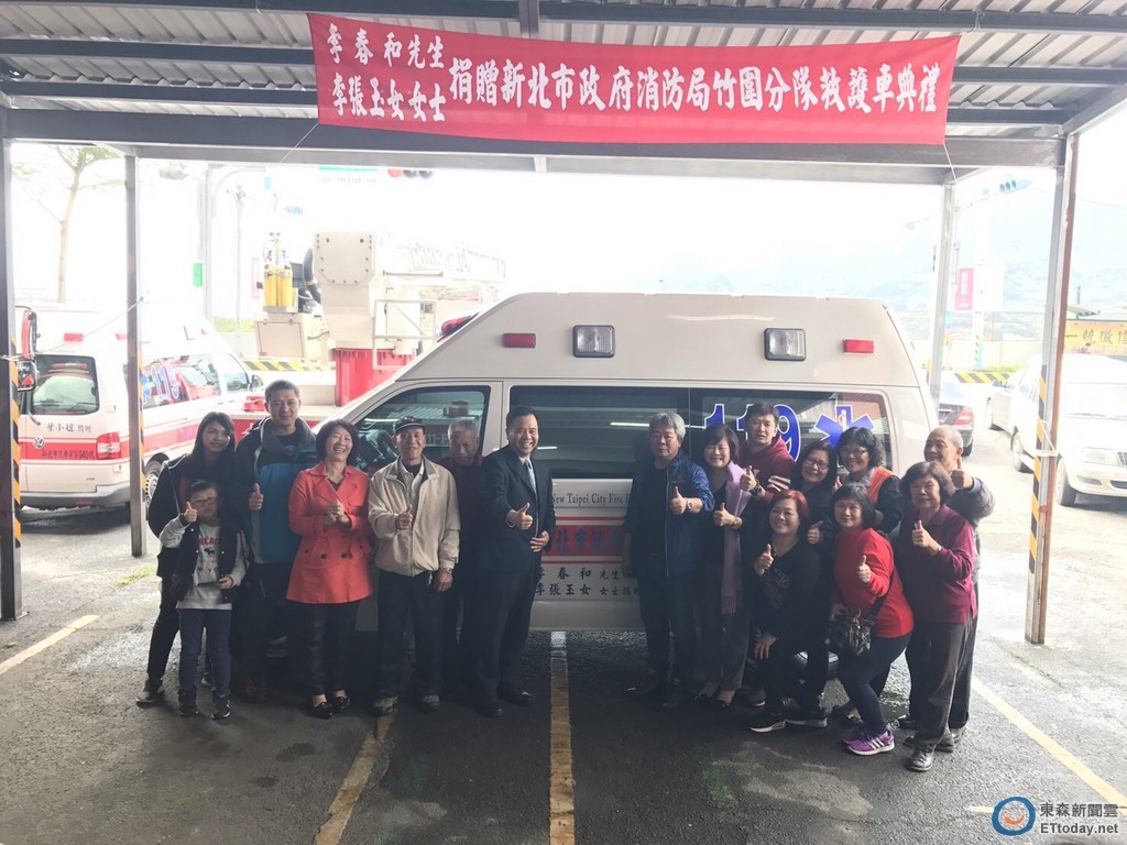 新北人口數全台最多,消防救護量也是全台第一,民眾李金樹父母生前即有意要捐贈救護車,但受限於財力直至過逝未能如願,李金樹等9兄弟姊妹為完成父母心願遂集資購買一部救護車,透過議員居間牽線,終在11日完成父母捐贈救護車心願,獲贈的第三大隊竹圍分隊則可因此提昇緊急救護品質。