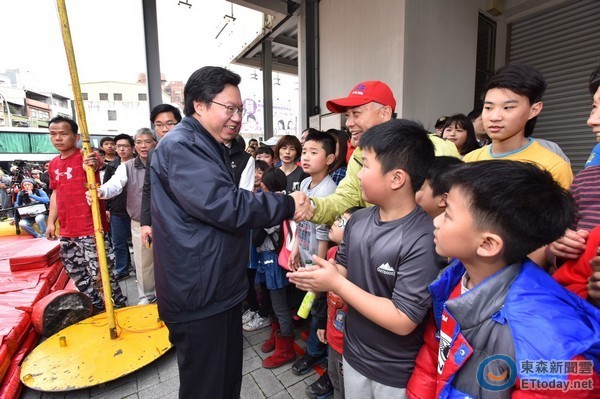 ▲鄭文燦也向在場鄉親握手致意。(圖/桃園市政府提供)