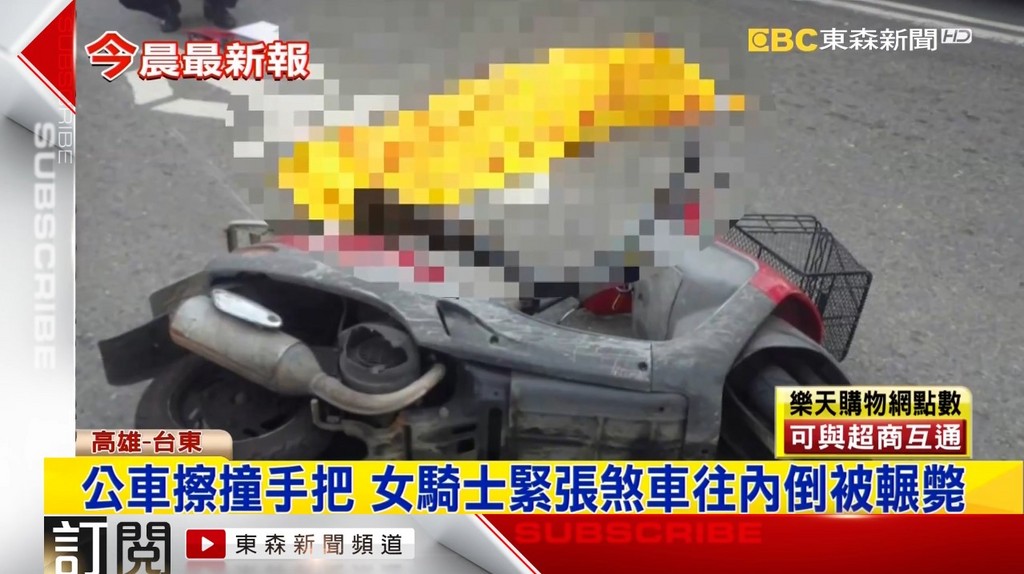 高雄市一名吳姓女騎士被公車輾過,等到司機聽到聲響下車查看,她已當場死亡。警方表示,公車車速較快,右側車門擦撞到機車的把手。