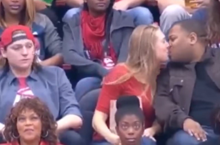 綜合外媒報導,當時是亞特蘭大鷹隊(Atlanta Hawks)對多倫多暴龍隊(Toronto Raptors)的比賽,休息時段,只要鏡頭對準,不論老老少少都大方親吻,期間當鏡頭指向一對白人情侶,男友卻置之不理,女友於是轉向隔壁的陌生男子,與對方輕輕一吻,這時,男友則立即「翻臉」離席走人。