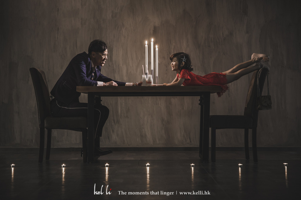 ▲父女在浪漫的餐桌上放閃。(圖/Kel Li授權使用)