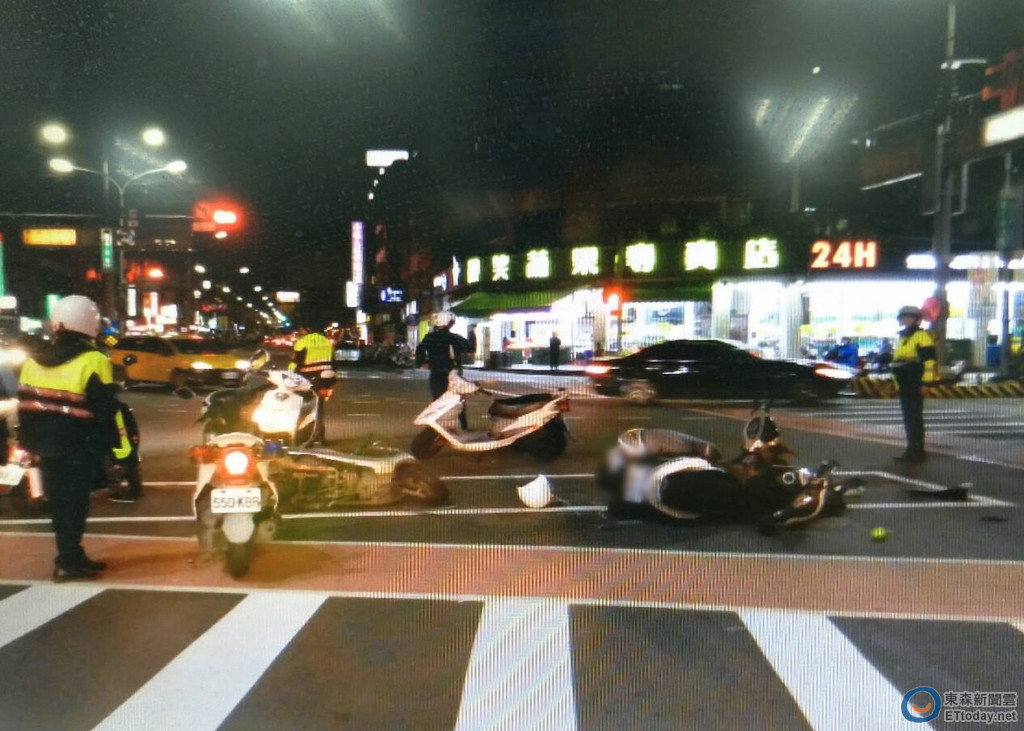 ▲一輛休旅車過彎不慎,撞倒機車待轉區5車共6人。(圖/記者林煒傑翻攝)