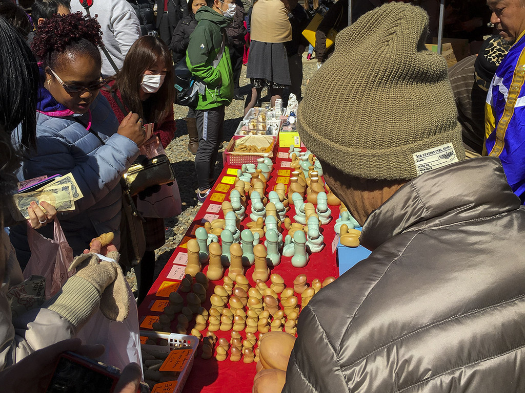 不過這些木雕最後都要奉納給神明,在觸碰時要禮貌對待。在祭典活動期間,周遭攤販也會販售陽具形狀的點心或紀念品,非常受到遊客歡迎。