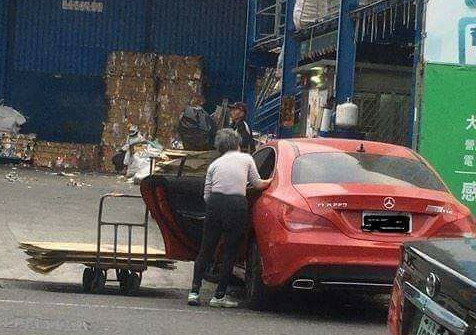 原PO表示「阿嬤,妳幸苦了,我相信你撿的不是紙板是寂寞」,只見照片中,撿回收的阿嬤正將紙板放進車內,而那輛「紅色車」卻是要價200萬起跳的Mercedes-Benz。雖然尚未證實該車是否為阿嬤所有,但看過照片的網友仍驚呼是「狂阿嬤」、「那一台賓士該不會用紙箱換來的吧」,甚至歪樓表示「缺孫子嗎?」