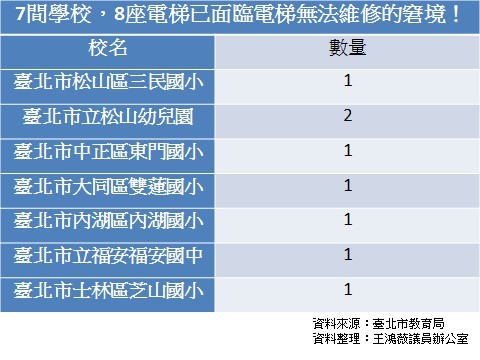 ▲通力電梯遭停業,北市各級學校8電梯無人顧。(圖/王鴻薇辦公室提供)
