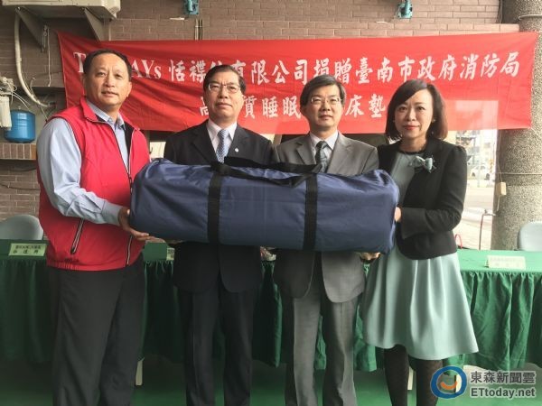 去年0206大地震是南台灣50年來最大的地震,在震災的周年,TENDAYs恬褋仕公司感佩消防隊員救災辛勞,繼去年7月捐贈26床高品質睡眠醫學舒壓床墊給台南市消防局後,16日再次捐贈40床,總值88萬8000元,40代表「適時」,希望能適時灌注一股愛的力量,用行動來肯定與支持第一線消防員的辛苦付出。