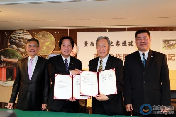 ▲台南市長賴清德,代表市府與退輔會、國防部共同簽署合作備忘錄,宣布遷建計劃啟動。(圖/市府提供)