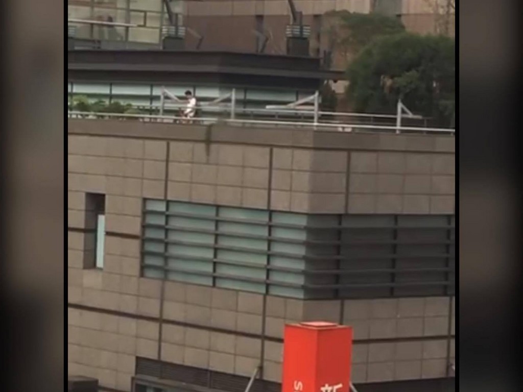影片中,一名白衣男子站在信義區新光三越A9頂樓,而女子則是跪在地上,接著頭部開始前後擺動,男子甚至一度壓住女生的頭「享受」以及撫摸頭髮,讓拍攝的網友驚呼連連「這是光天化日之下的口交嗎?」「那男的好像射了耶!」