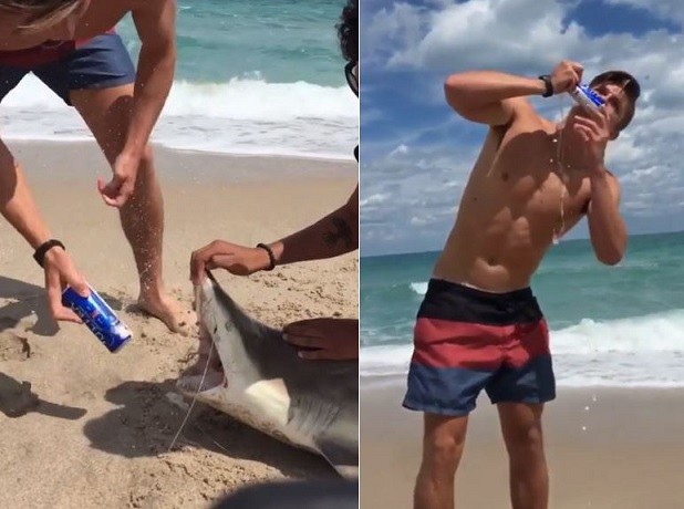 屁孩無極限!疑似美國的青少年日前上傳一部影片至社交網站「Instagram」上被網友罵翻,起因於他將擱淺的鯊魚當成「開瓶器」,其惡劣行徑令人髮指。