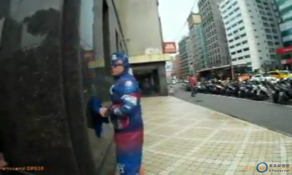 美國隊長穿著制服擦大樓外牆,還開始脫衣服、脫褲子鞋子?原來是台北市一名30歲謝姓男子,不知為何換上全套美國隊長制服,用衣服猛擦大樓外牆,民眾看了覺得奇怪報警,員警到場,男子卻開始脫衣脫鞋,還要員警「你忙你的!不要吵我!」甚至對員警大聲咆哮、丟東西,最後是「台灣所長」當街一記大外割,才讓男子乖乖就範。
