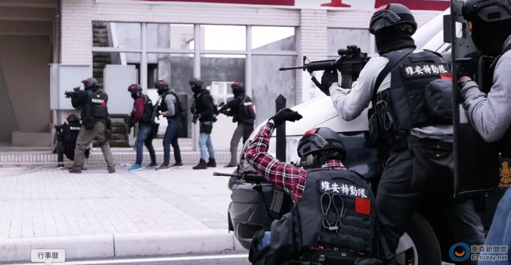 ▲反恐訓練中心21日在桃園市新屋區落成,各單位的特勤警力聯合演練世大運的反恐行動。(圖/記者柳名耕翻攝(下同))