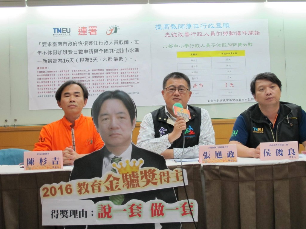▲全教總召開記者會批評台南市「保障兼任行政教師免超額」政策。(圖/翻攝全教總臉書,下同)
