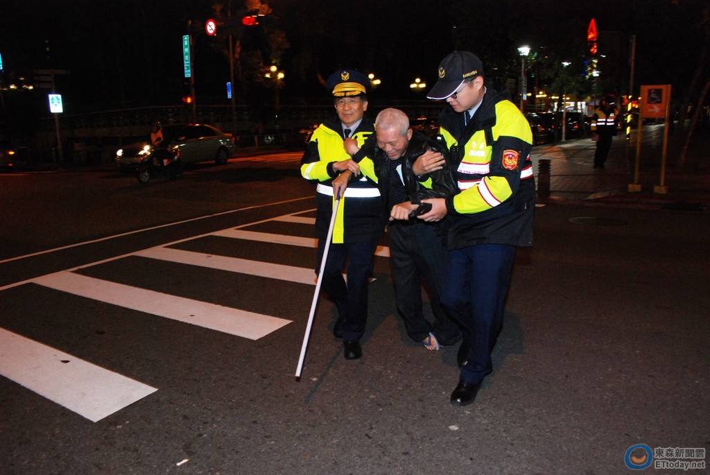 ▲員警看到老翁拄拐杖要過馬路,立即上前攙扶。(圖/記者張曼蘋翻攝)