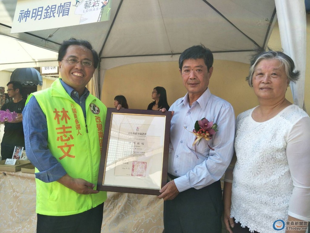 台南市南區在地鹽埕工藝大師郭春福老師,榮獲台南市文化局頒發市定傳統藝術保存者神明銀帽類授證,郭春福老師於傳統藝術有卓越貢獻,除郭夫人陪同外,特邀忘年好友,也是2018年台南市南區市議員參選人林志文,一同參加市長賴清德主持的授證典禮,典禮場面溫馨感人。