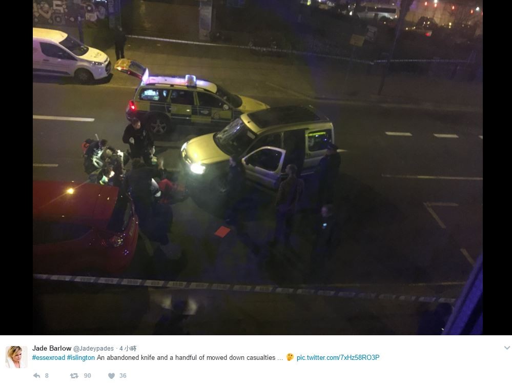 據英國《每日星報》報導,25日晚間10點55分時,一輛汽車在倫敦伊斯林頓的街頭上衝撞路人。警方接獲報案後,偕同救護車趕到現場,並在艾塞克路(Essex Road)上的酒吧外對傷者進行治療,目前已知有4名傷者受到輕傷。