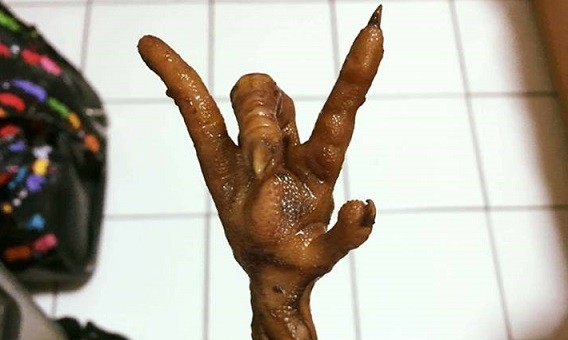 網友在「爆廢公社」貼出一張雞爪的照片,不過相當奇特的是這隻雞爪似乎有「搖滾靈魂」,中間的腳趾往下凹了,比出了搖滾手勢,讓貼文者表示,「牠生前是個Rocker。」事後,照片被分享到臉書「爆料公社」後,笑翻不少網友。