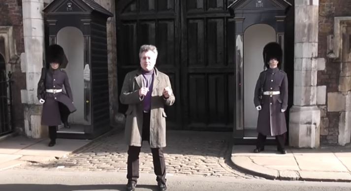 近日網路上流傳一段影片,一名身穿紫色上衣的大叔,在倫敦的聖詹姆斯宮(St James's Palace)前大跳不明舞蹈。2名站在大叔身後的英國女皇禁衛軍(Queen’s guard)原先面無表情,不過下一秒卻突然暴怒,很用力的跺了左腳並放聲大罵「走開」,嚇得大叔趕緊跑向前將攝影機關閉。