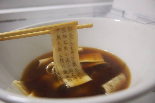 不少人都有看過《哆啦A夢》,他的寶物其中有一項是「記憶吐司」,吃了可以增加記憶力,但你有看過「大悲咒麵條」嗎?有網友分享到日本去玩時,看到一款「心經麵條」,直接把心經印在麵條上,然後煮成熟食吃下去。不少網友看到之後,紛紛直呼「吃完感覺都消除業障了!」