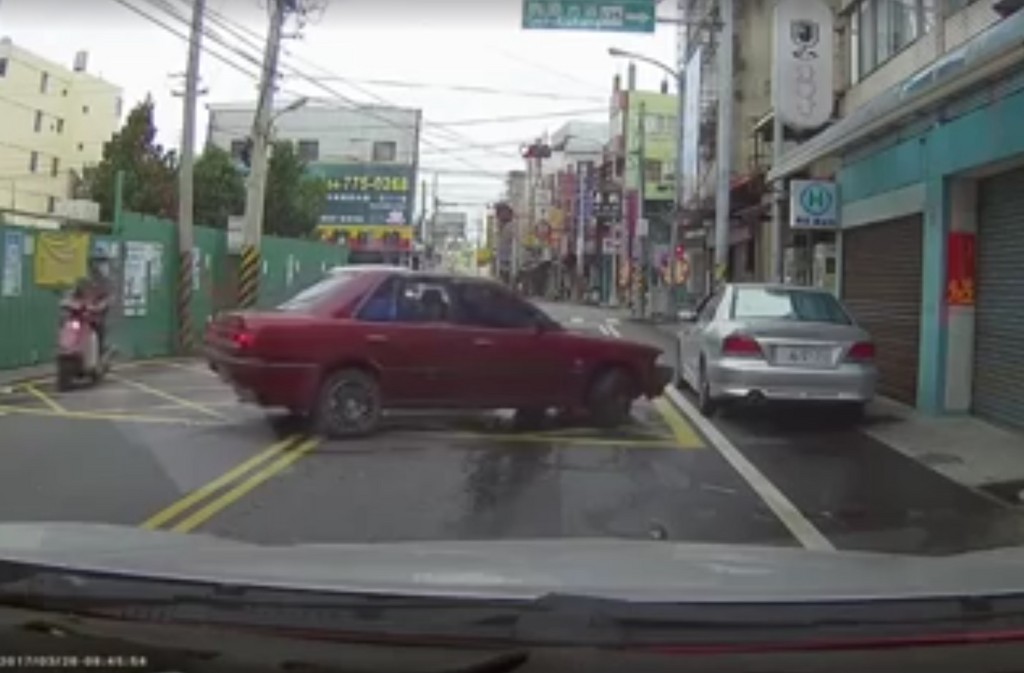 「到底是要幾次?」畫面中,這輛紅色轎車從對向車道要迴轉,只見他垂直橫躺路中央,接著直線倒車到底,將方向盤向左打死後想要左轉,但卻因正前方停了一輛車空間不足而轉不過去,只見駕駛不斷倒車、前進、倒車、前進,方向盤怎麼就是不在倒車時往右打,死死地咬住左邊,同樣的動作連續做了至少6次才終於驚險迴轉成功,但這時原PO已經被卡在半路整整1分多鐘。