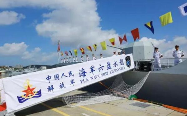 據微信公號「當代海軍」透露, 3月31日,海軍新型護衛艦六盤水艦入列命名授旗儀式在海南三亞某軍港舉行,標誌著該艦正式加入人民海軍戰鬥序列。