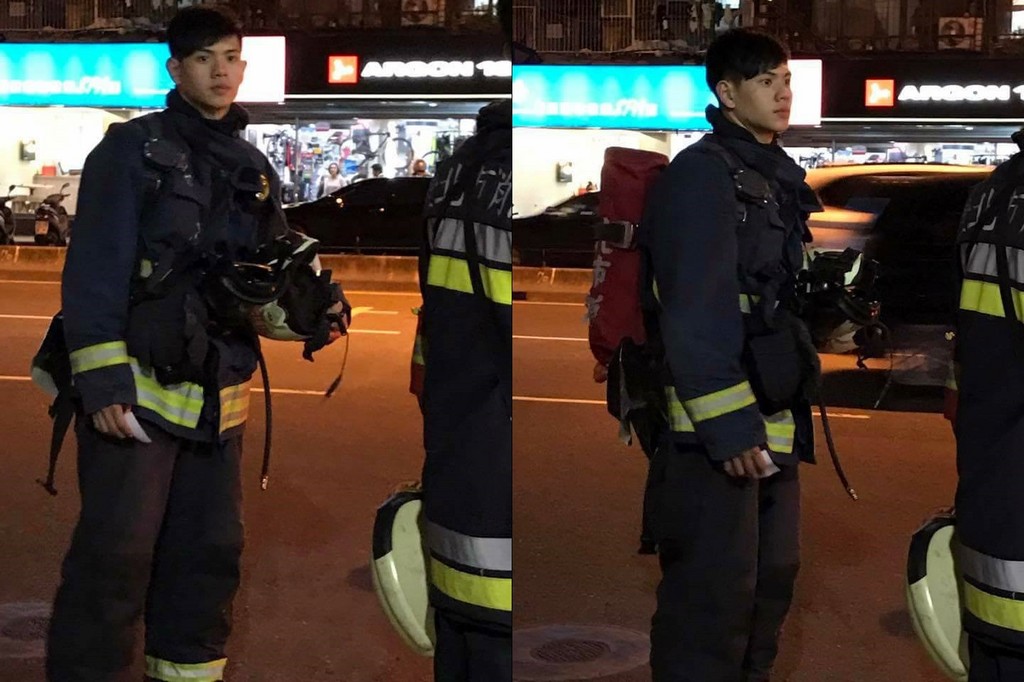 根據她拍下的3張照片,消防鮮肉有些神似天團5566成員許孟哲,照片很明顯沒和他對上正眼。只見他穿好全副裝備,正專注執行勤務,不管是側面偷拍,或不經意的回眸,全身散發著英挺氣息,無怪乎成功讓網路上萬千少女如癡如醉,「戀愛ING」!