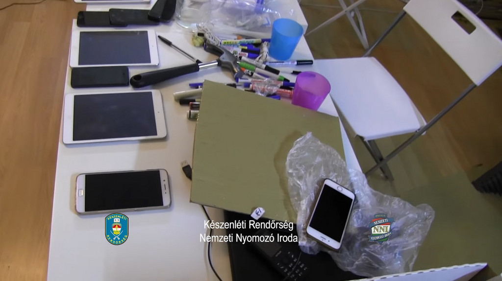 據匈牙利警方指出,共有35名台灣人在其中,經搜查,警方認定現場正在進行非法活動,調查人員查獲筆記型電腦、手機、平板電腦等,從警方拍攝的影片來看,屋子內還有不少台幣、零食等。