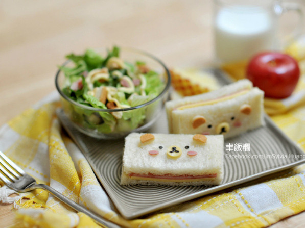 ▲簡單的火腿起司三明治,已經很美味,但加點裝飾就是可愛的熊熊三明治。