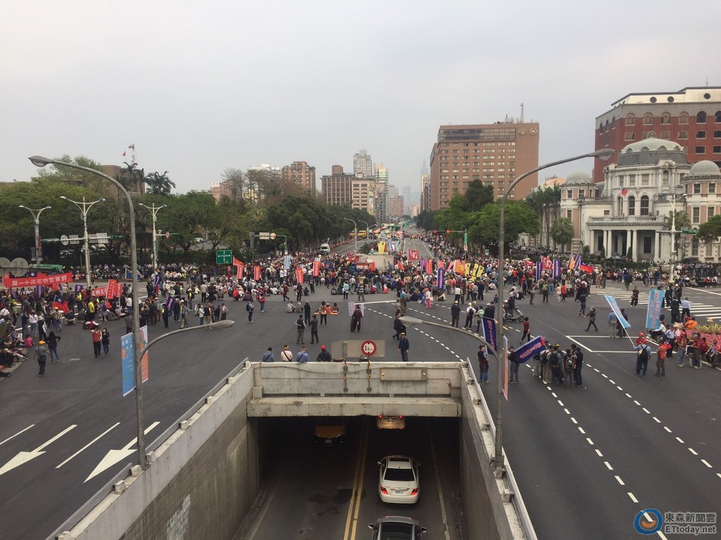 隨後,抗議人士漸漸轉往忠孝東路、忠孝西路及中山北路交岔口,導致往來該路段的車輛無法通行,人牆阻擋讓一排公車被迫倒退改道,所有車輛皆改轉往旁邊道路通行,甚至還有機車也騎進地下道,對於抗議造成的不便,民眾怨聲載道。其中,更有車輛逆向,並拜託現場人員暫時移開柵欄讓他轉換到隔壁地下道行駛,才得以脫困。