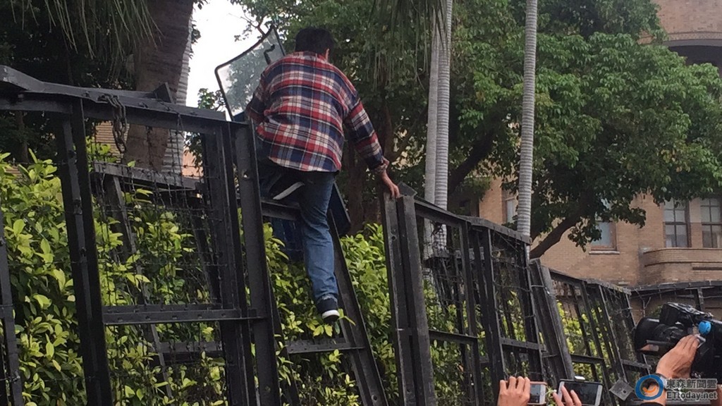 ▲軍公教闖行政院,民眾試圖翻過拒馬。(圖/記者陶本和攝)