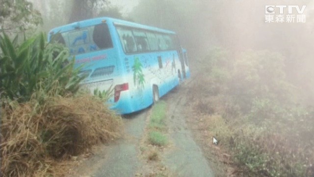 直到駕駛發現前方道路可能無法通過,便想找空地迴轉調頭,但疑似因雨後地面泥濘濕滑,整輛遊覽車就往左邊山坡滑落,把司機嚇出一身冷汗,由於位置偏僻沒有人煙,他只好打電話報警求救。