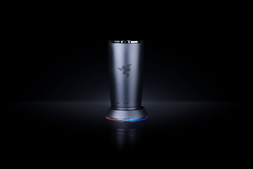 在談到兌換方式前,先來談談這款專屬的 RGB 馬克杯,雖然杯子本身不會發亮,但採用不鏽鋼材質打造,容量約 590ml 外,瓶身上的 Razer Logo 更是死忠粉絲一定要獲得的一項要素;另外,主打的杯墊部分,則是內搭官方的 Chrama RGB 炫光技術,可搭配鍵盤、滑鼠或是筆電做呼吸燈特效之餘,也能透過壓力感應器,拿起水杯時燈光就會自動熄滅,實在是相當瞎趴。