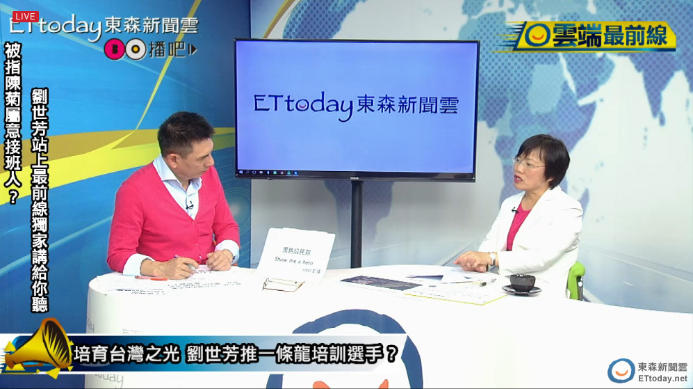 劉世芳一席筆挺的白色西裝外套,走進《ETtoday東森新聞雲》網路直播中心,一如往常上政論節目一般的謹慎嚴肅,但在網路的時代,在主持人楊文嘉鼓勵下,希望能放輕鬆聊天,並在談話的過程中與網友有所互動,這才稍稍趨緩緊張的氛圍。這是委員第一次上網路直播節目,而這寶貴的第一次也就獻給了「雲端最前線」。