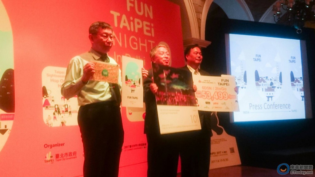 台北市政府30日晚間在印度的泰姬稜酒店舉辦台北之夜、台北觀光之夜活動,現場不只公布多項旅遊促銷方案,也強調台北的素食餐廳非常多,印度人來台北的食衣住行一定沒有問題;此外,他也喊話,要印度著名的寶萊塢可以來台取景。柯文哲更以唐三藏西赴取經為例,「今天算是現代版西遊記,來印度看看可以互相觀摩學習什麼,把好的帶回去台北,再融合一下看會不會產生新的文化。」