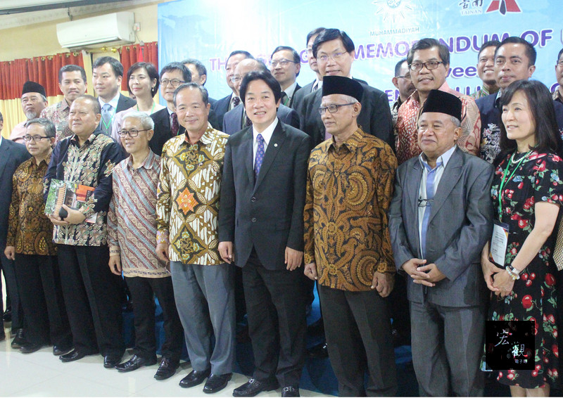 ▲台南市長賴清德(右四)率領台南市12所大學與印尼穆罕默迪亞大學系統簽署招生合作備忘錄。他盼藉此做為未來台南或台灣和伊斯蘭國家交流的里程碑(圖/翻攝自僑委會網站)