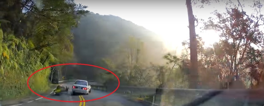 ▼黃姓男子開白色BMW轎車經北宜公路往宜蘭,但其卻是沿途不斷蛇行、跨越雙黃線,最後撞到對向王姓騎士的紅牌重機。(圖/翻攝自youtube)