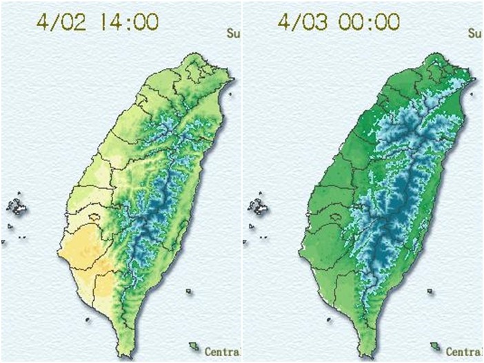 晴朗穩定的天氣導致擴散條件差,氣象局提醒,3日雲嘉南地區空氣品質為紅色警示燈號,對所有族群不健康,中部及高屏地區為橘色提醒,其他則為良好至普通等級。